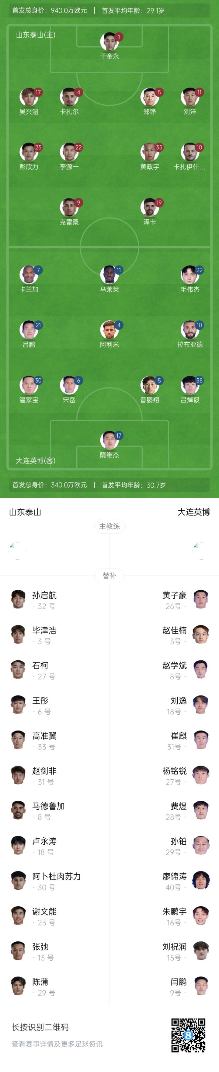 直播吧2月28日讯北京时间今天下午15:30,中超联赛第2轮大连英博将在客场对战山东泰山。